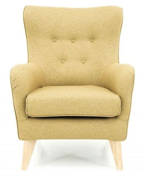 Stilren och modern fåtölj, designad med hög rygg och dekorerad med knappar. Tjock härlig avtagbar dyna med god komfort i kallskum med fibervadd som ytskikt. Fåtöljen har ett karaktäristiskt gammaldags utseende och gör sig bra i många hem och rum.