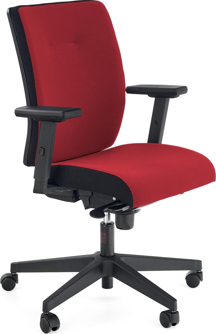 Kontorsstol med synkronmekanism, ställbar sits och ställbart armstöd.