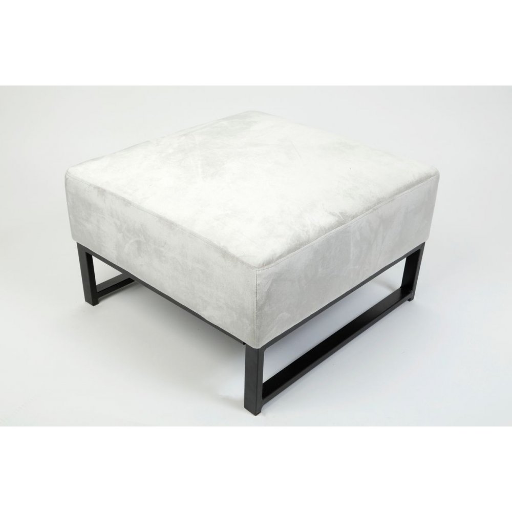 Above är en serie med barstolar, matstolar, bänkar, fotpallar och loungefåtöljer i exklusiva och mjuka sammetstyger i olika färger med svarlackade benstativ. Denna pall är 72x72 cm med en höjd på 45 cm och fungerar lika bra som ett soffbord som sittpall.