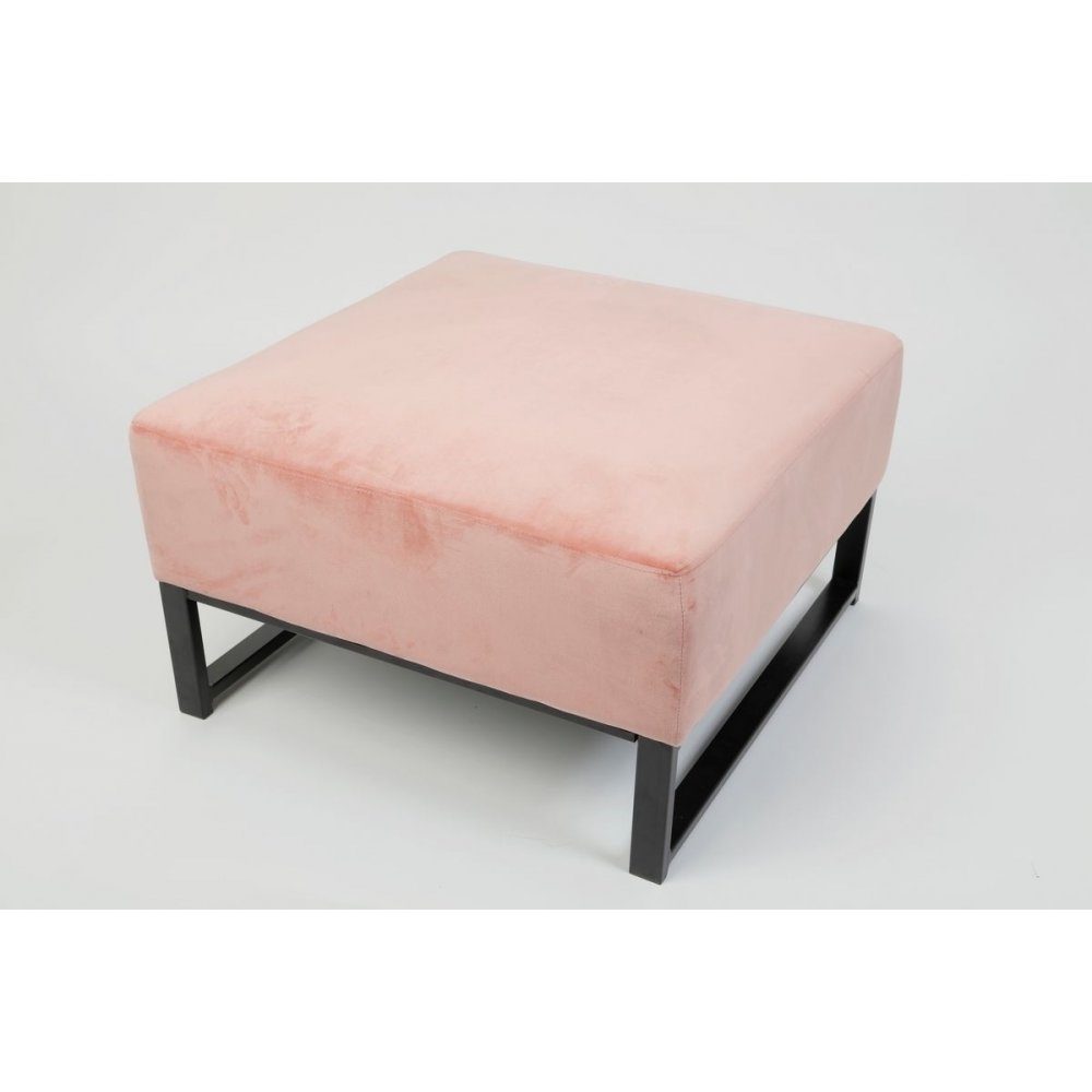 Above är en serie med barstolar, matstolar, bänkar, fotpallar och loungefåtöljer i exklusiva och mjuka sammetstyger i olika färger med svarlackade benstativ. Denna pall är 72x72 cm med en höjd på 45 cm och fungerar lika bra som ett soffbord som sittpall.