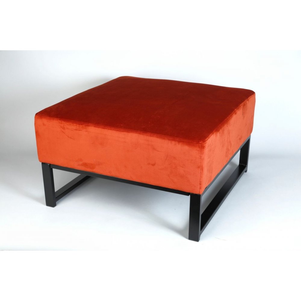 Above är en serie med barstolar, matstolar, bänkar, fotpallar och loungefåtöljer i exklusiva och mjuka sammetstyger i olika färger med svarlackade benstativ. Denna pall är 72x72 cm med en höjd på 45 cm och fungerar lika bra som ett soffbord som sittpall.