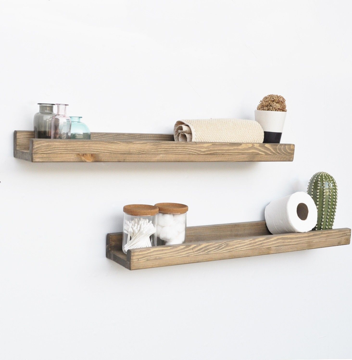 Vägghylla av trä.