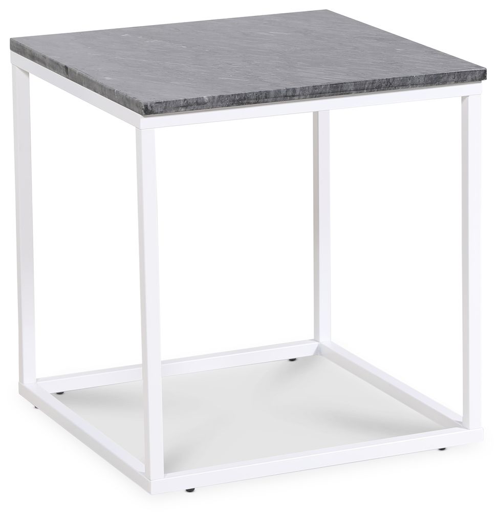Accent lampbord med en grå äkta marmorskiva och underrede i vit metall. Accent är ett stilrent bord med vacker design och har en mycket lång hållbarhet. Accent är ett väldigt prisvärt lampbord.