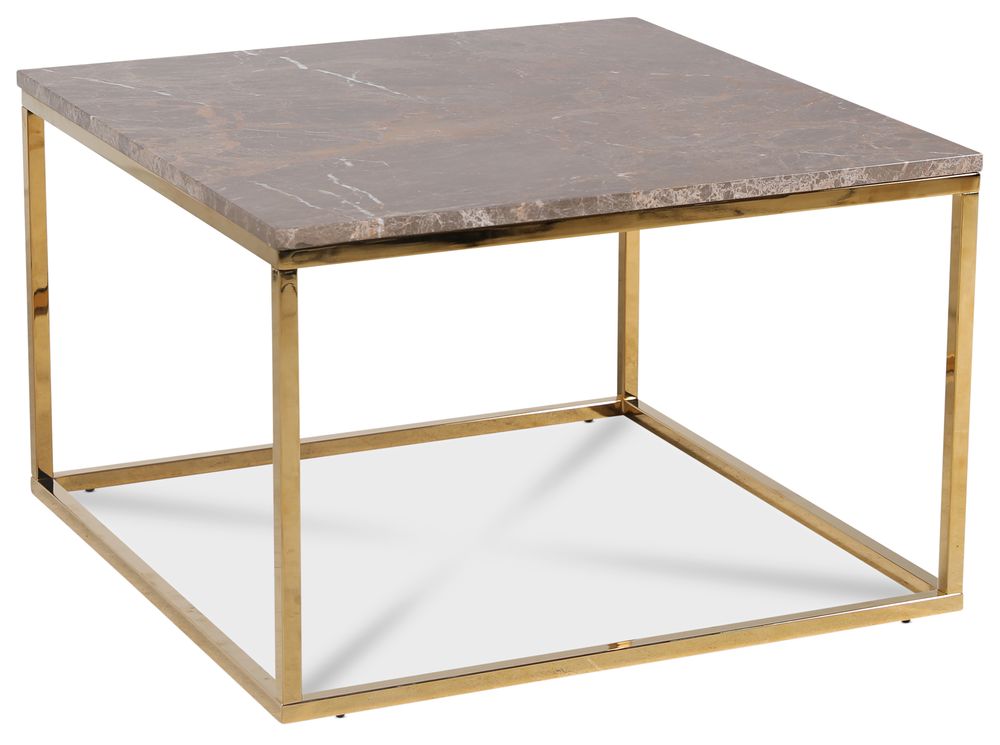 Accent soffbord med en brun äkta marmorskiva och underrede i blank mässingsfärgad metall. Accent är ett stilrent bord med vacker design och har en mycket lång hållbarhet. Accent är ett väldigt prisvärt soffbord.