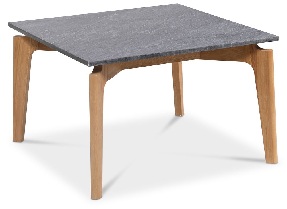 Accent soffbord med en grå äkta marmorskiva och underrede i ek. Accent är ett stilrent bord med vacker design och har en mycket lång hållbarhet. Accent är ett väldigt prisvärt soffbord.