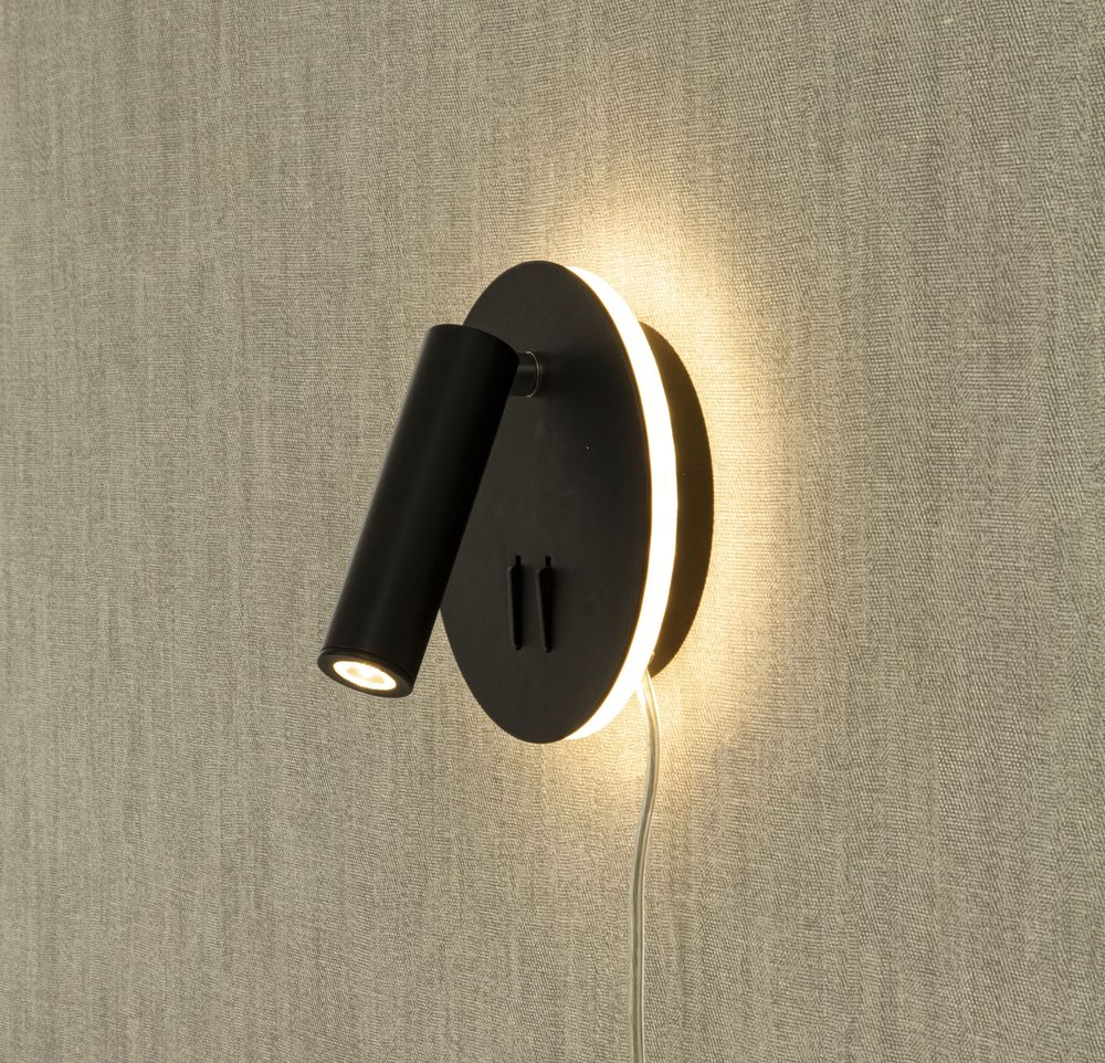 Vägglampa i svart utförande. Monteras lätt fast på väggen. Backlight som även lyser upp väggen