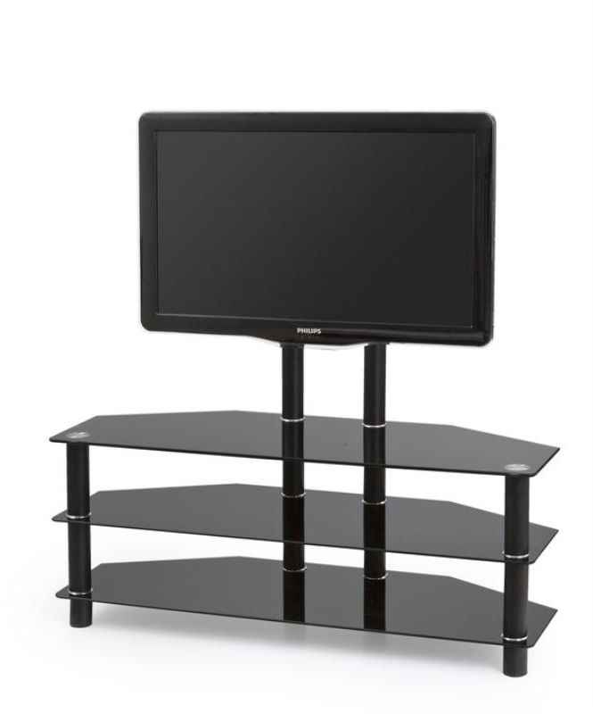 Ada är en funktionell tv-bänk med upphängningsanordning och hyllor i svart glas för förvaring av apple-tv, Playstation, mediamodul m.m.