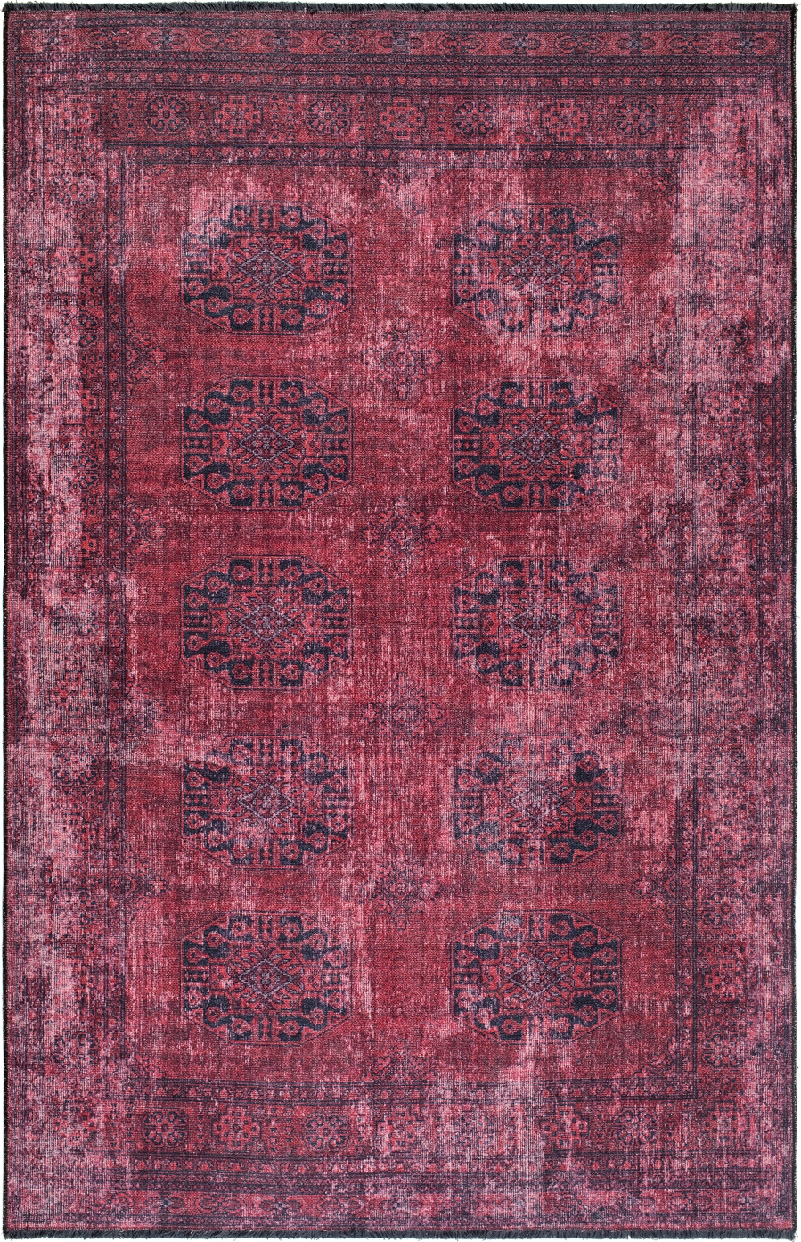 Adana Boccara Röd är en modern tryckt matta med boccaramönster tryckt i färgerna plommonröd och blått. Trycket har en lätt vintagelook och är en härlig färgklick för ditt hem. Kortsidorna pryds av en nättare svart frans och långsidorna har en matchande langett. Adana är tillverkad med filtbaksida och är tvättbar i 30 grader.