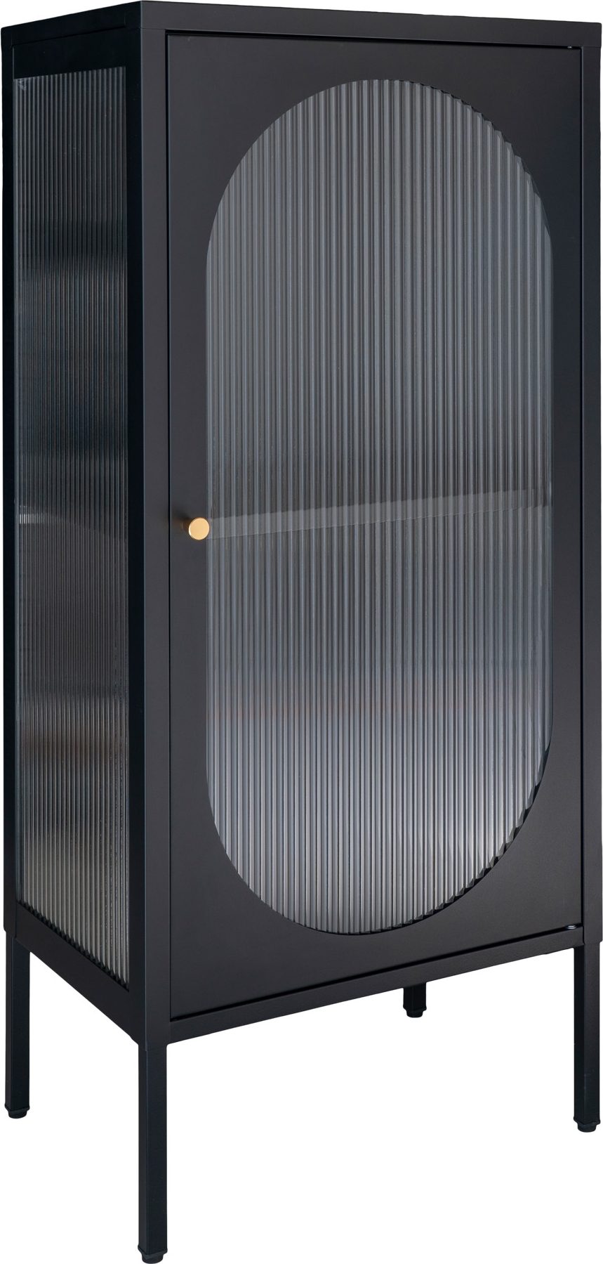 Vitrinskåp av stål och glas. Viss montering krävs.