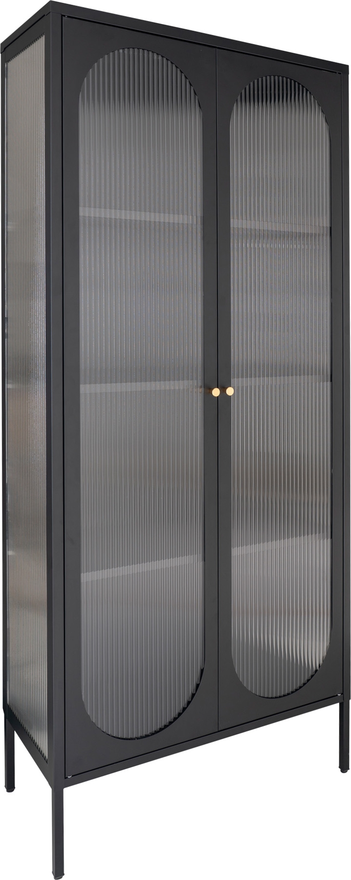 Vitrinskåp av stål och glas. Viss montering krävs.