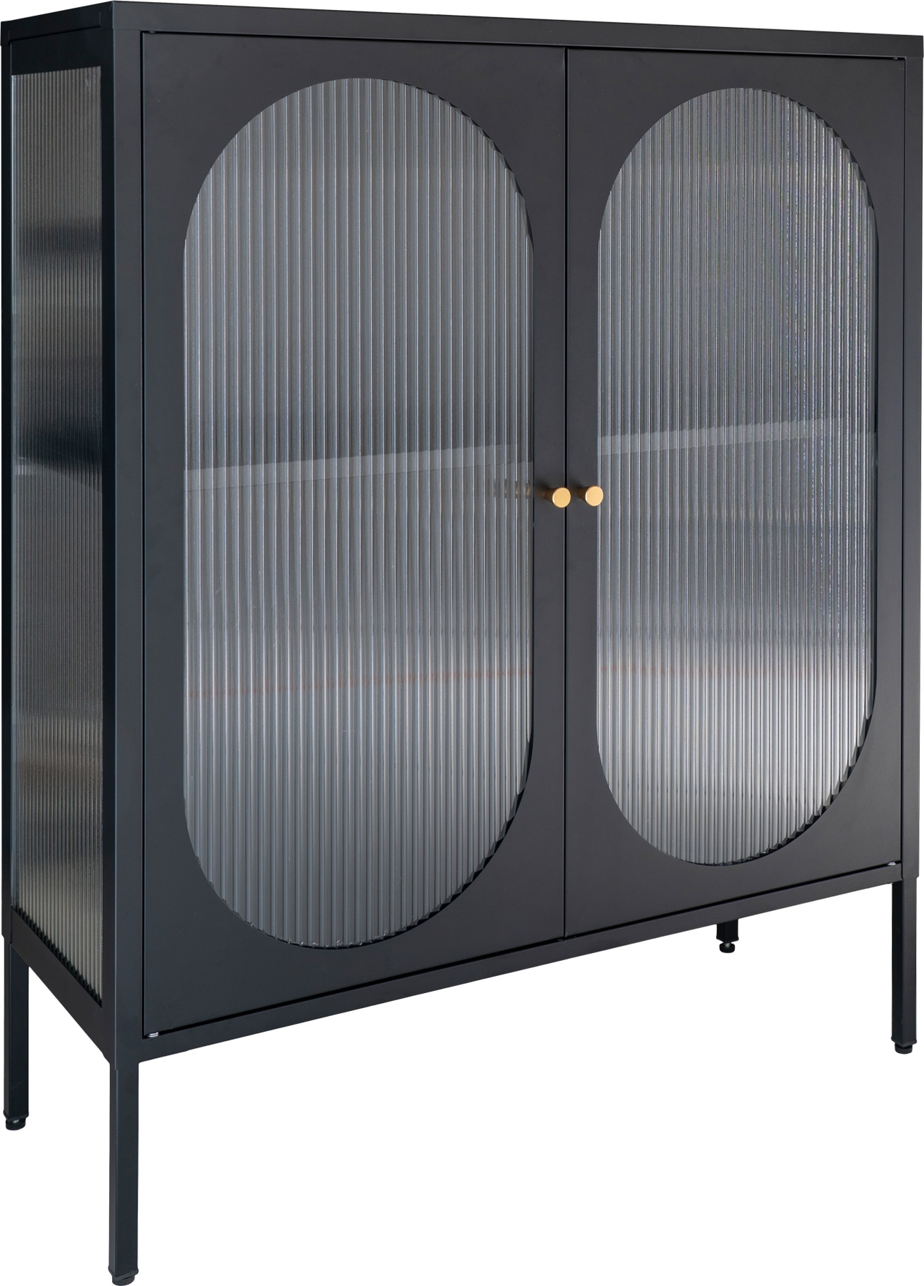 Vitrinskåp av stål och glas. Viss montering krävs.