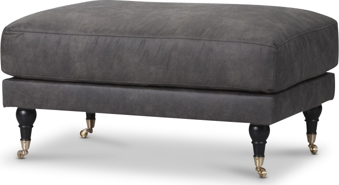 Fotpallen är klädd i ett slitstarkt Pu som liknad vintage läder. Benen är svarta med mässingsfärgade hjul.