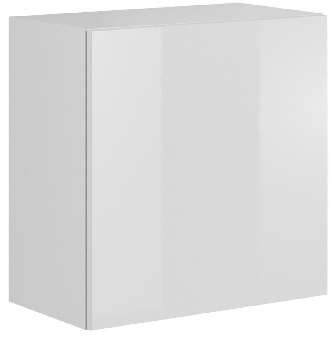 Ett snyggt väggskåp med en modern design. Skåpet är tillverkat av laminerad MDF med en blandning av matt och högblank finish. Rustat med en praktiskt push-click funktion i skåpsdörren.