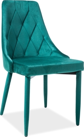 Matstol i metall. Klädd med polyester i sammetsimitation.