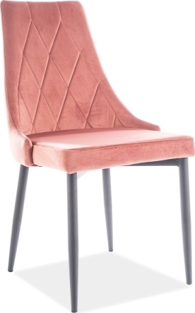 Matstol i metall. Klädd med polyester i sammetsimitation.