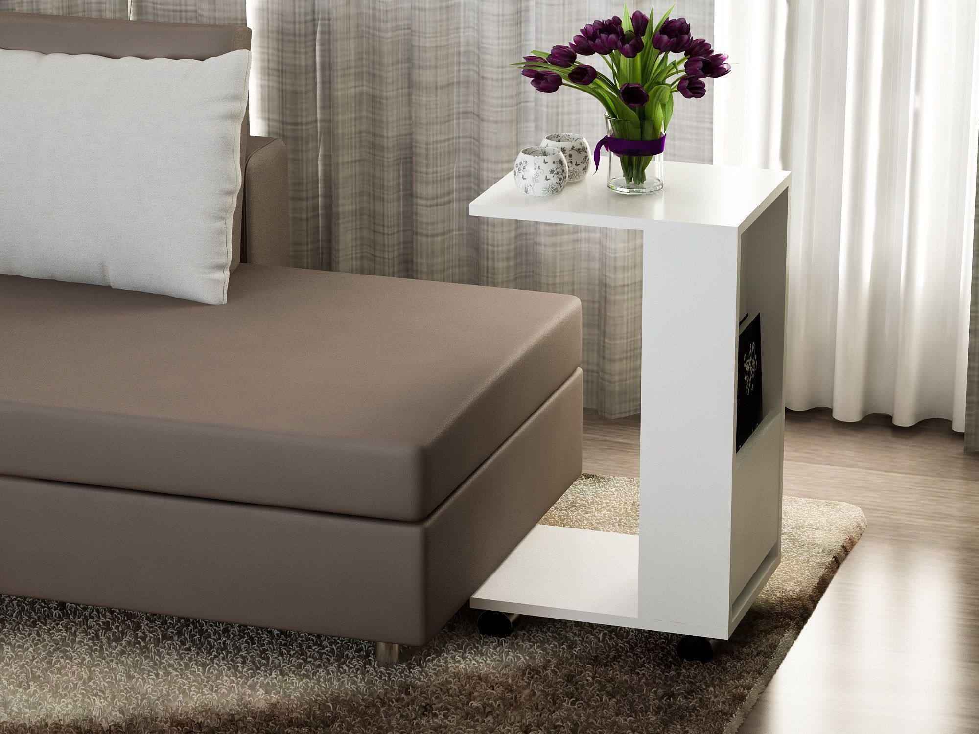 Sidobord av melaminbelagd spånskiva.