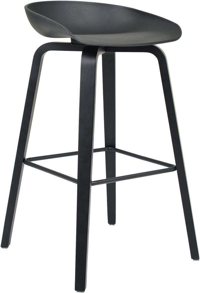 Fräck barstol i svart med fotstöd. Stilren och passar bra in i många miljöer.