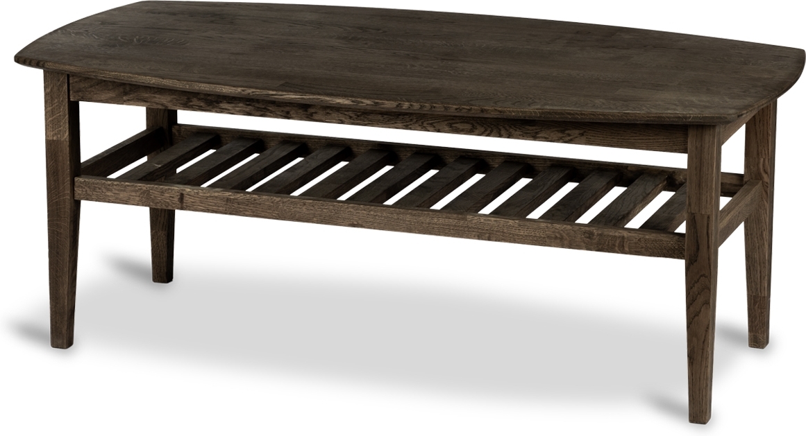 Traditionellt soffbord i massiv rökoljad ek, hyllan bidrar till en bra förvaringsplats.