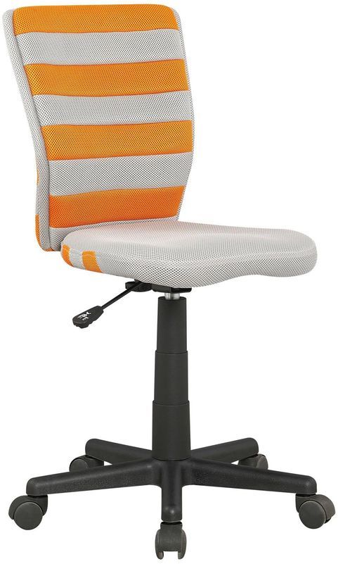 En härlig kontorsstol med en stilren design. Tillverkad i metall med detaljer i plast och en mycket behaglig klädsel i grått och orange tyg. Sitsen är höj-och sänkbar samt lätt att förflytta med hjälp av hjulen under stjärnfoten.
