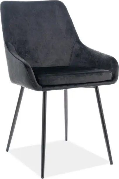 Matstol i metall. Klädd med polyester i sammetsimitation.