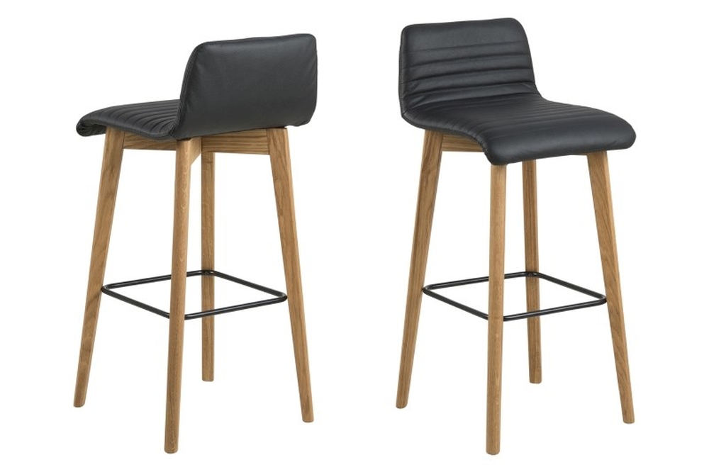 Stilrent och skön barstol från vår Albuquerque serie, klädd med svart buffel läder. Oljebehandlade ben i massiv ek med fotstöd.