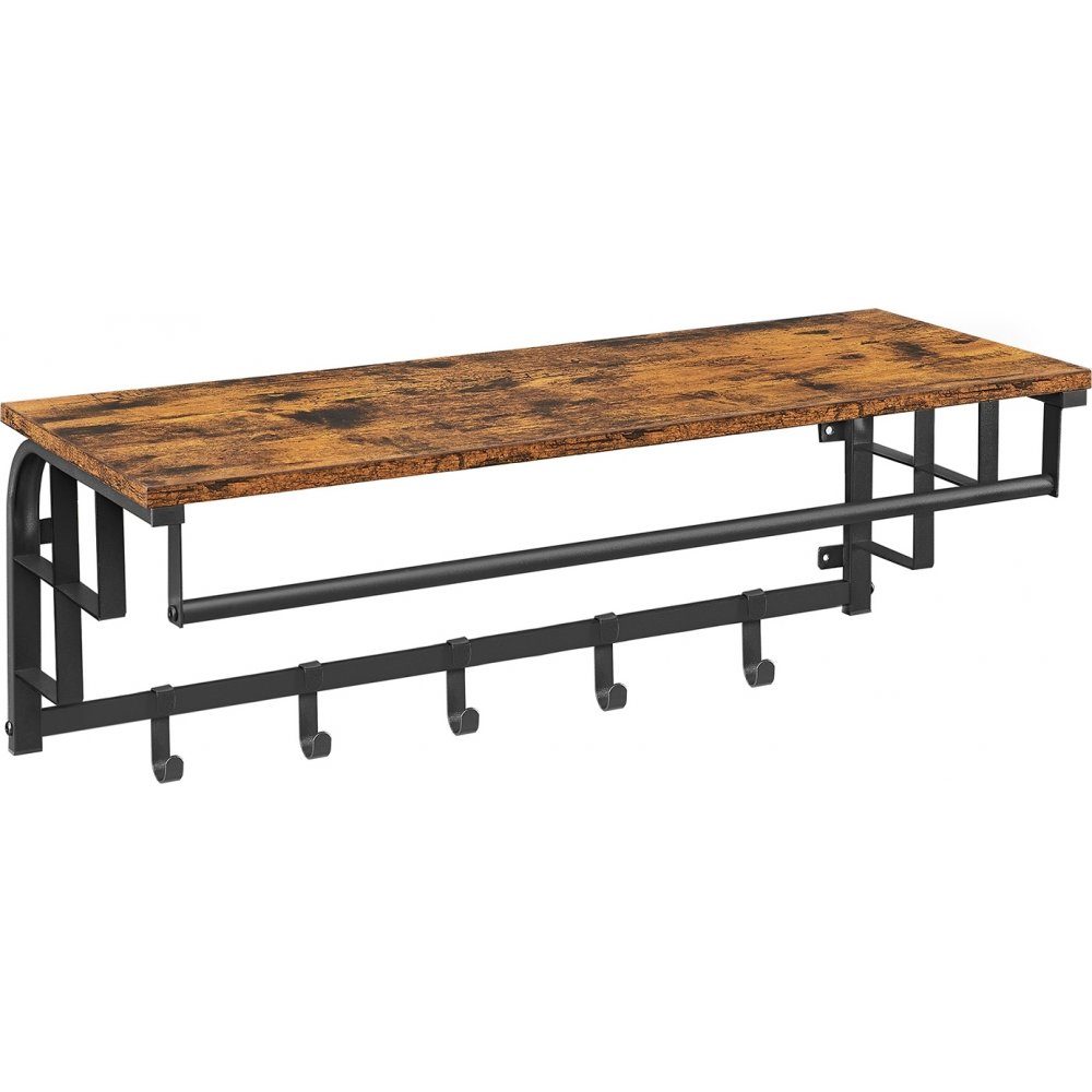 Klädhängare med hatthylla. Gjord av trä och stål.