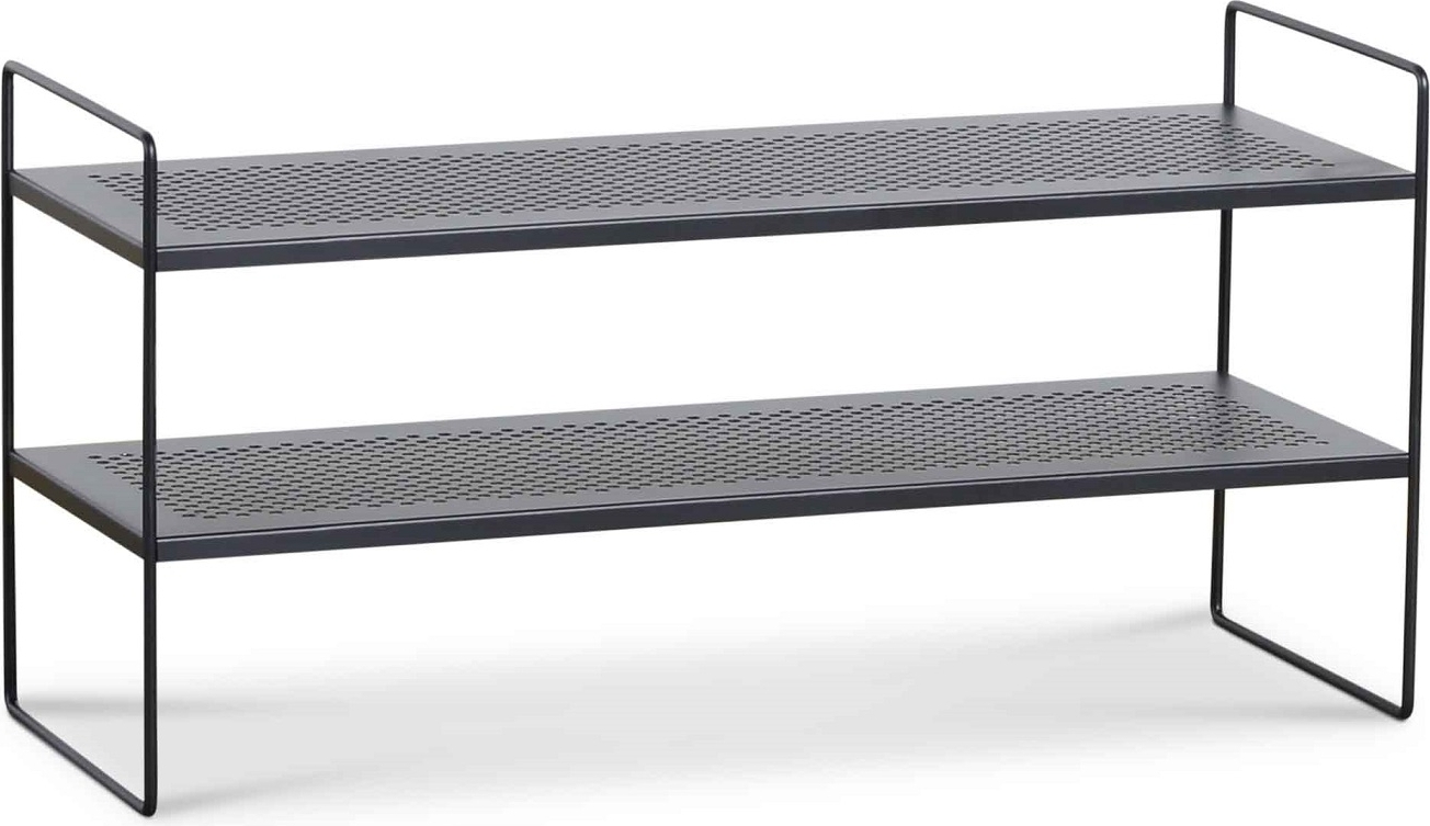 Stilren och praktiskt skoställ. Svartlackad metall. Skostället har två hyllor.
