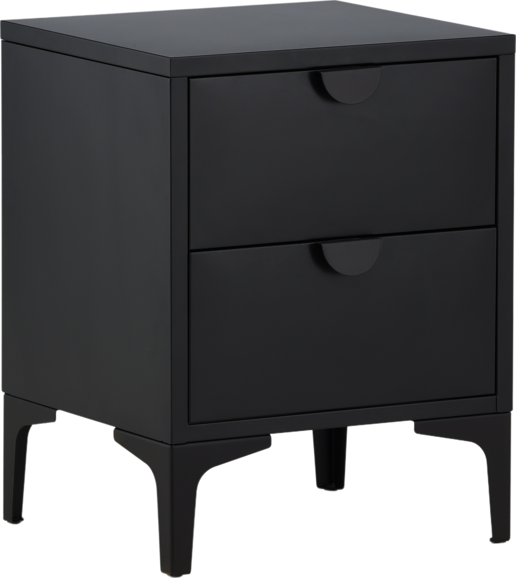 Sängbord i serien Alexander är perfekt som förvaringslösning. Det kvadratiska sidobordet i svart stål har två lådor för dold förvaring och stilren ovansida med lagom plats för en sänglampa, en bra bok och eventuell prydlig inredningsdetalj för modern look. Sängbordet lyfts upp av fyra ben som ger en luftigare känsla och den raka designen gör bordet lättplacerat och enkel att matcha. Se våra bilder för inspiration.
