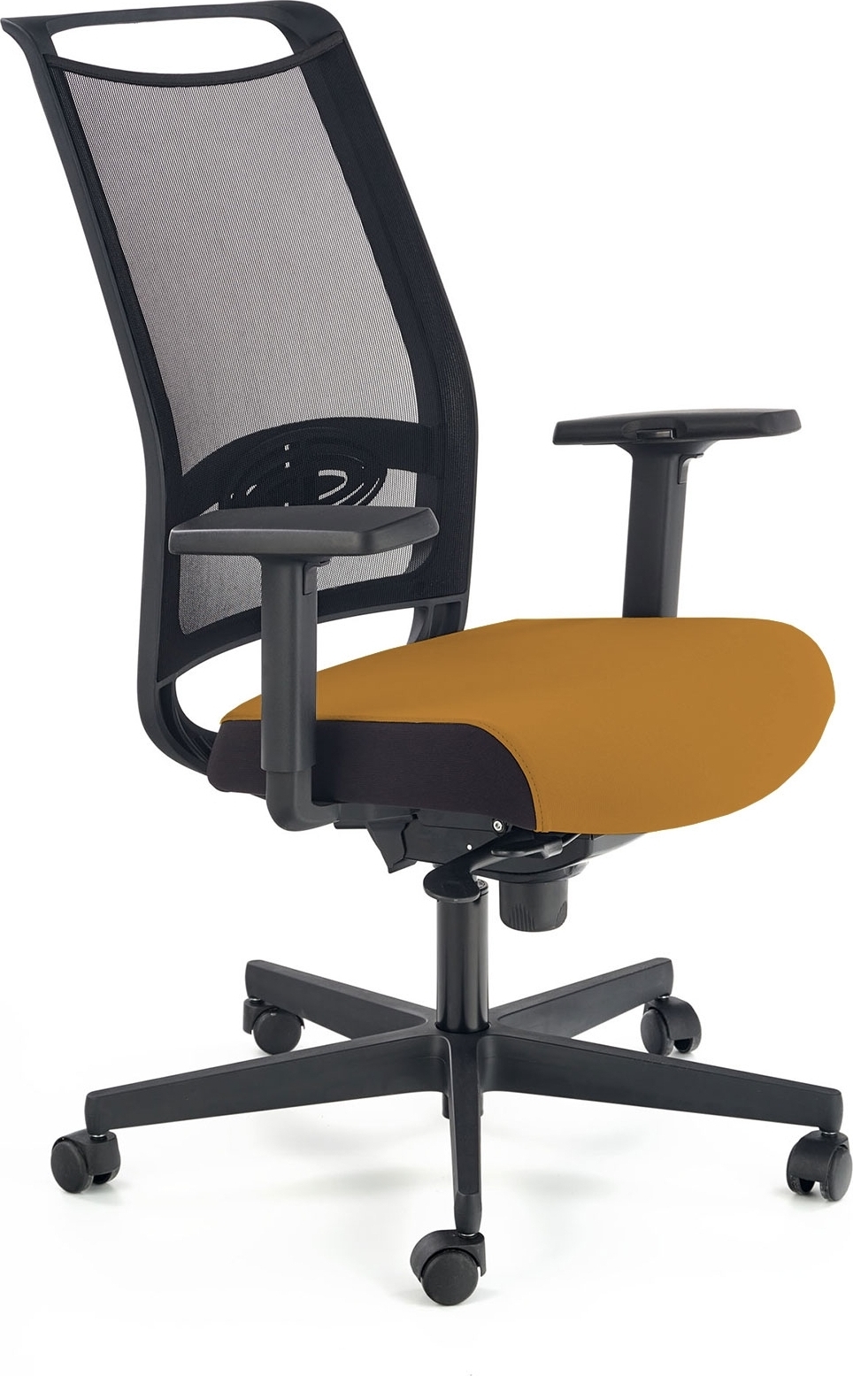 Kontorsstol med synkronmekanism, ställbar sits, ställbart armstöd och ställbart ländryggsstöd.
