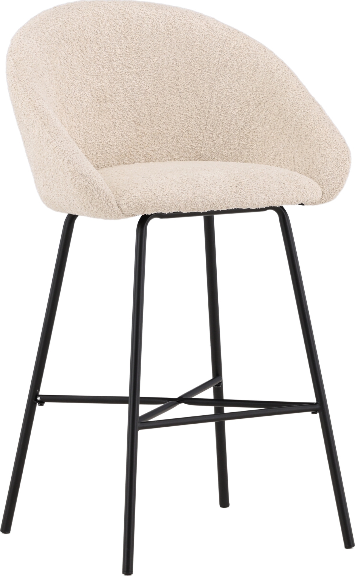 Smakfull barstol i skandinavisk design som garanterat kommer skapa ett inbjudande blickfång i ditt hem. Med en mjuk rund sits i stoppat, vitt teddytyg och integrerat fotstöd i svart stål är den här barstolen lika stilsäker som bekväm att sitta i. Möblera kring det höga matbordet eller vid bardisken i köket för trivsamma stunder tillsammans!