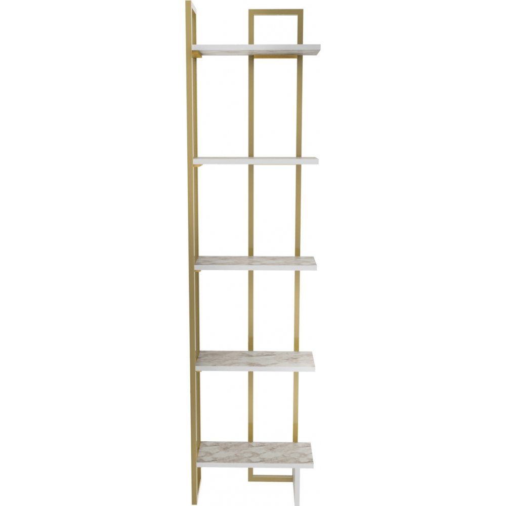 Bokhylla av metall med hyllplan av melaminbelagd spånskiva.