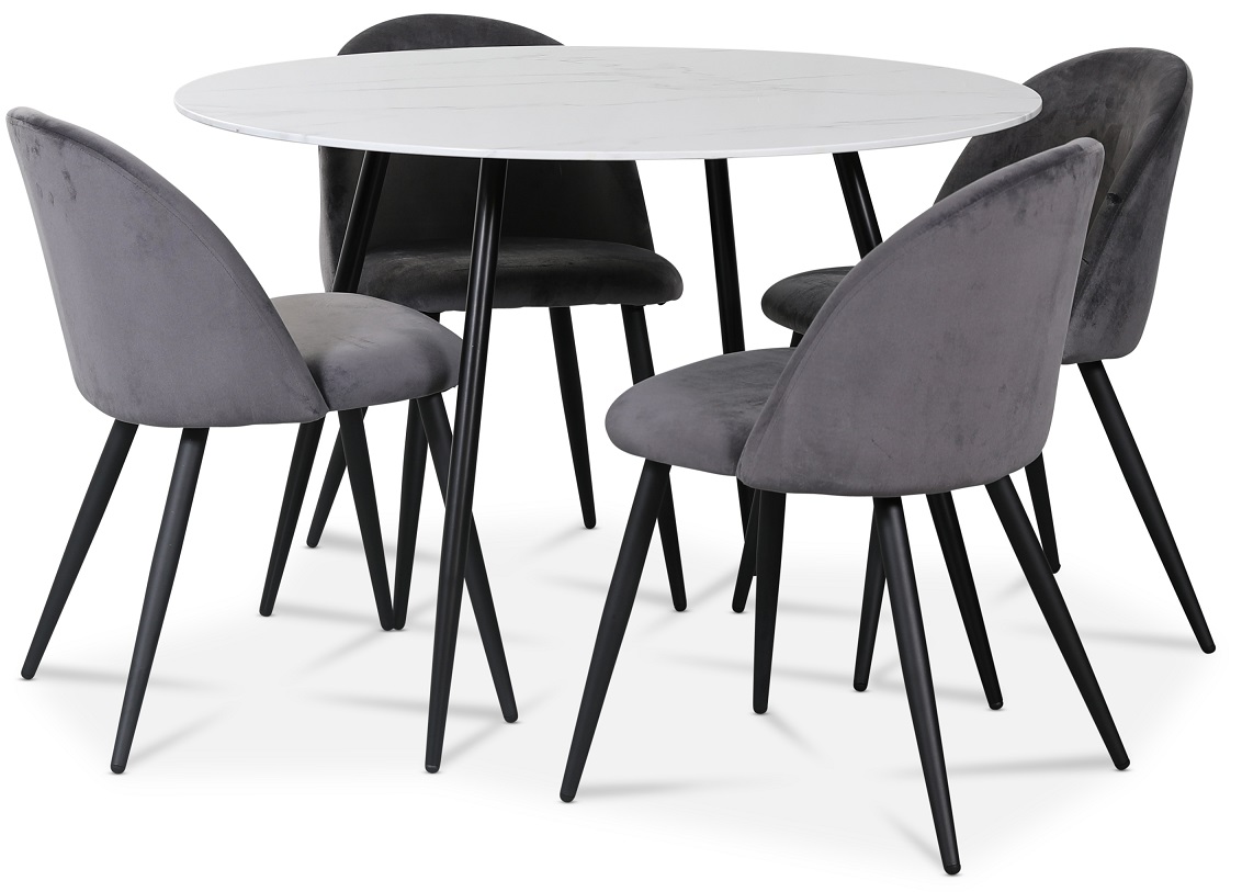Alice matgrupp, 110 cm runt bord + 4 st Alice stolar mörkgrå sammet