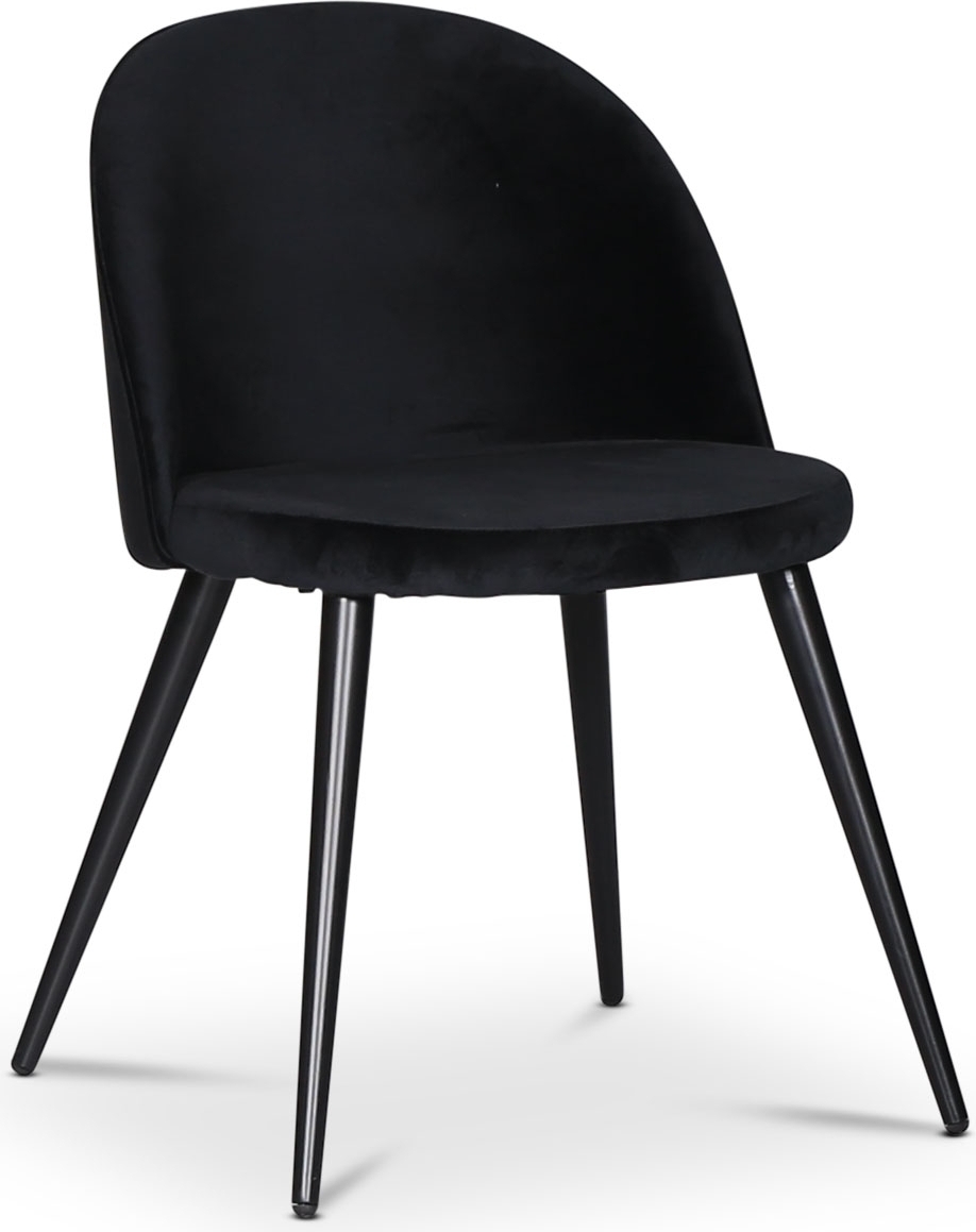 Alice matstol är klädd i ett lyxigt svart sammetstyg som ger en känsla av elegans och stil. Denna sammetsstol är utformad för att erbjuda hög komfort, vilket gör den till det perfekta valet för både långa middagar och sociala sammankomster. De matchande svarta metallbenen bidrar inte bara till stolens moderna utseende, utan ger också en robust och stabil bas, vilket gör den idealisk för daglig användning.