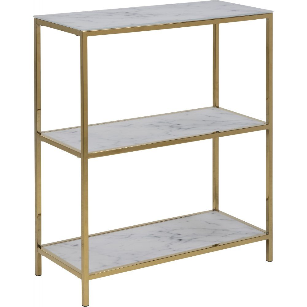 Alisma bokhylla 69,5 cm - Vit marmor/guld