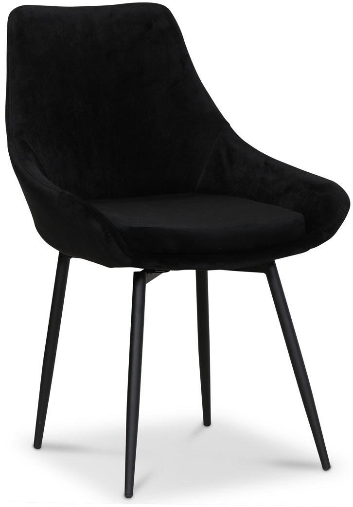 Allarp matstol med skön sittkomfort och modern design med ett svart lyxigt sammets tyg. Svartlackerade stålben.