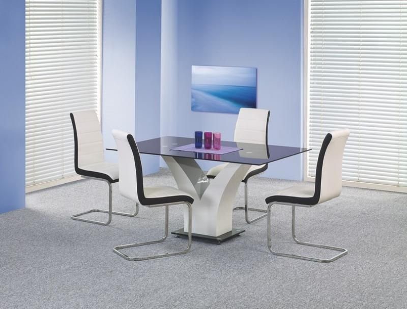 Snyggt matbord med en modern design. Stommen är tillverkad av vitlackerad MFP (premium träskiva) med en mycket fin design och bordsskivan är av svart glas.