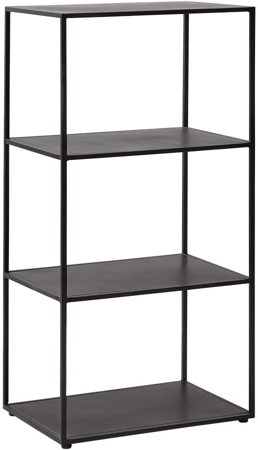 En härlig bokhylla med en modern design. Bokhyllan är tillverkad av svart metall med hela 4 hyllplan för praktisk förvaring av böcker och prydnadssaker.