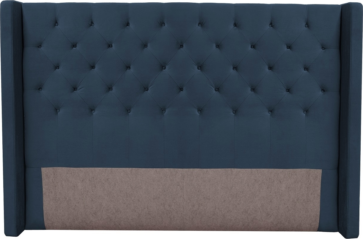 Med sänggavel Almedal kan man välja den bredden man har på sängen. Sänggaveln är klädd i ett mörkblått mjukt sammetstyg. Snygg design med djuphäftade knappar för att ge ett lyxigt utryck i sovrummet.