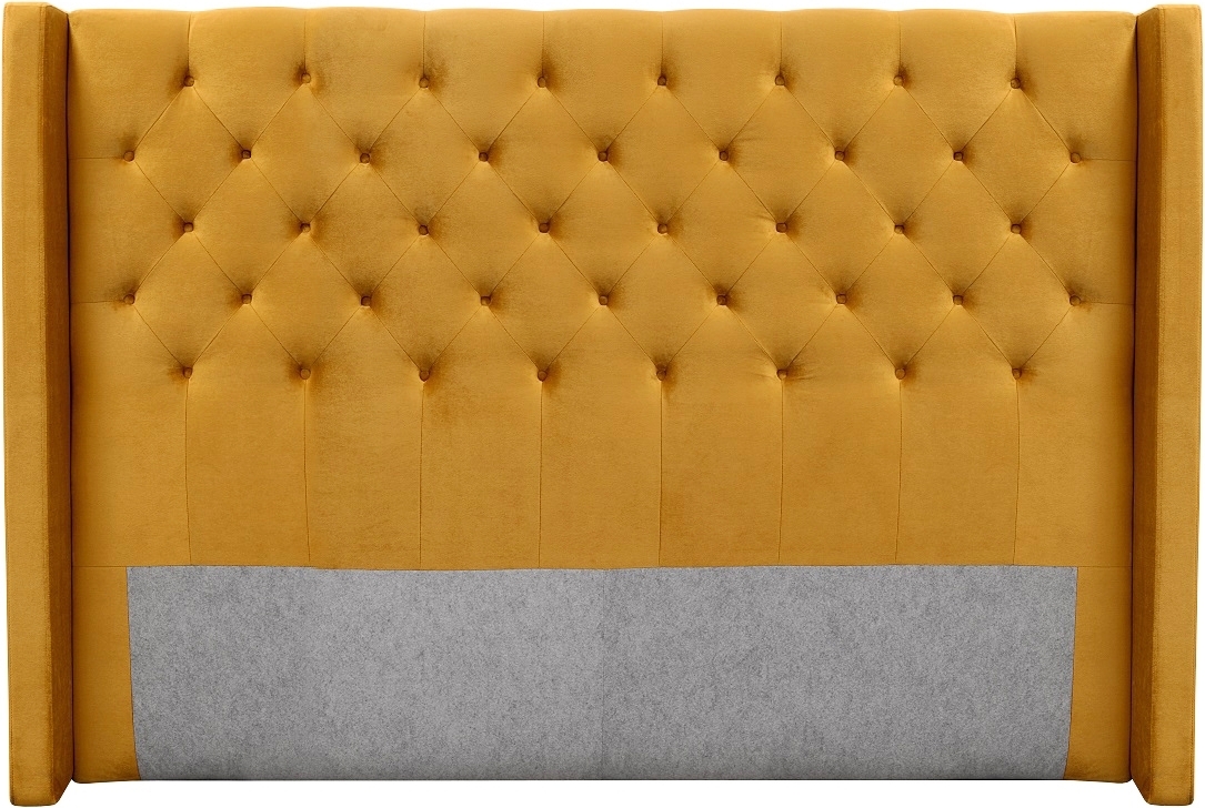 Med sänggavel Almedal kan man välja den bredden man har på sängen. Sänggaveln är klädd i ett guldfärgat sammetstyg med en mjuk känsla. Snygg design med djuphäftade knappar för att ge ett lyxigt utryck i sovrummet.