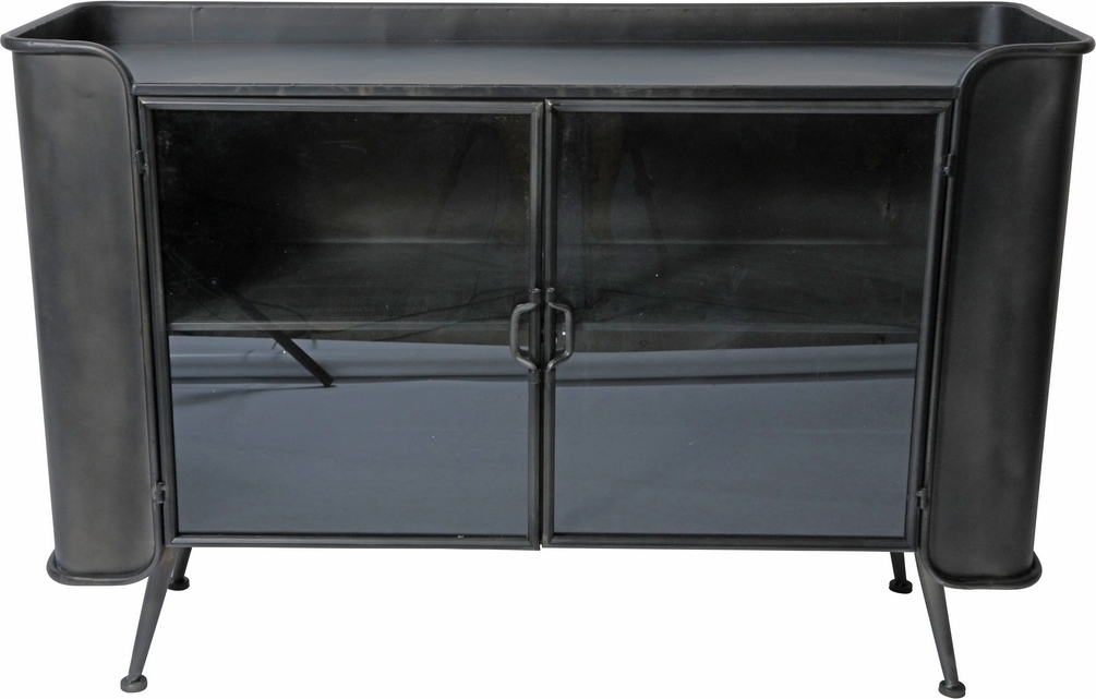 Almir skänk i vintage metall. Vitrindörrar. Förvaring med fasta hyllplan.