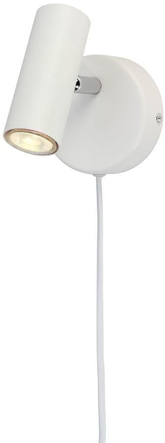En snygg vägglampa med en modern design. Tillverkad i metall med ett vitt utförande. Riktbar ljuskälla.