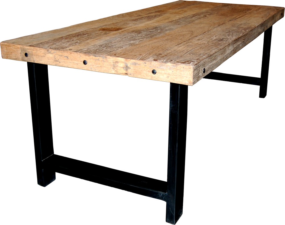Bord i vintage med bordsskiva av massivt återvunnet trä och bordsben av svart metall. Varje bord är unikt och kan därför skilja i finish.