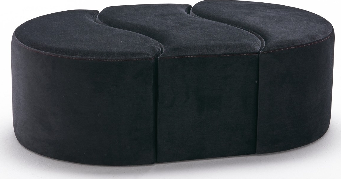 Sittpuff av trä. Klädsel av polyester och sammet.