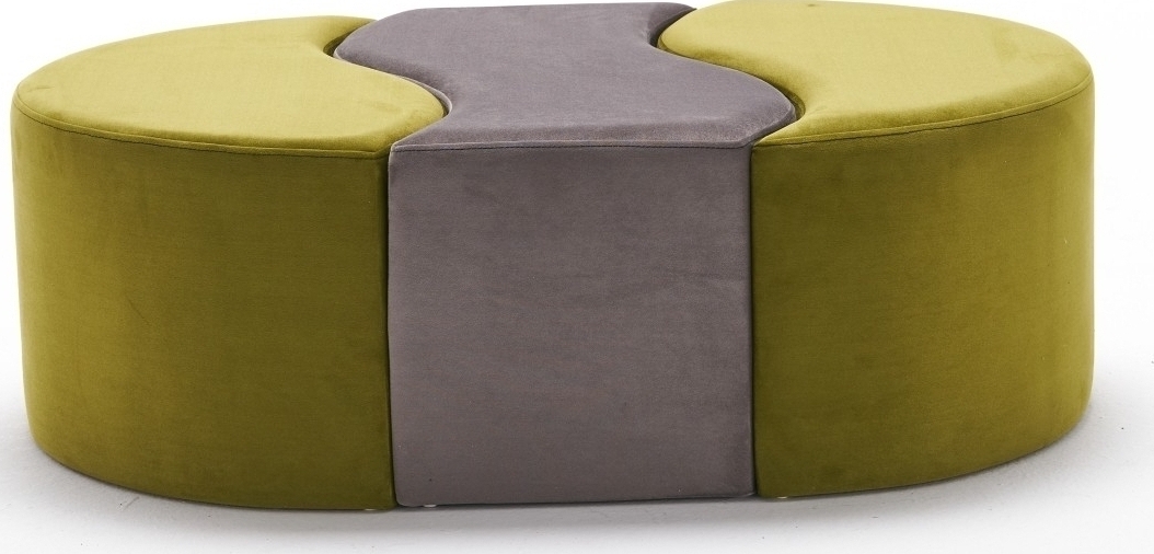 Sittpuff av trä. Klädsel av polyester och sammet.