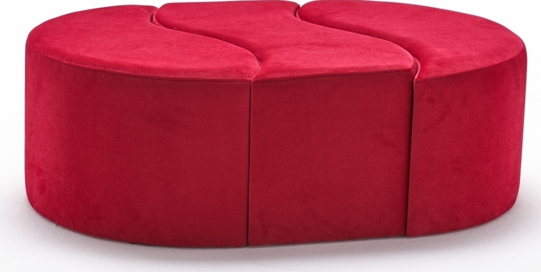 Sittpuff av trä. Klädsel av polyester och sammet.