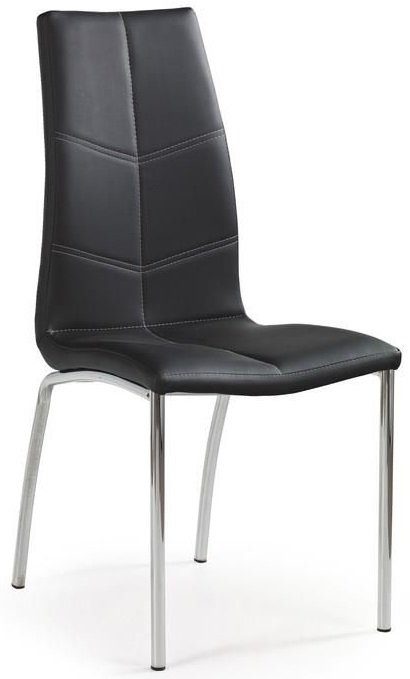 En skön matstol med en modern design. Underredet är tillverkat i kromad metall med sitsen klädd i ett mycket behagligt svart konstläder för maximal komfort.