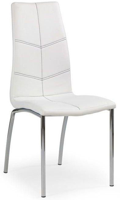 En skön matstol med en modern design. Underredet är tillverkat i kromad metall med sitsen klädd i ett mycket behagligt vitt konstläder för maximal komfort.
