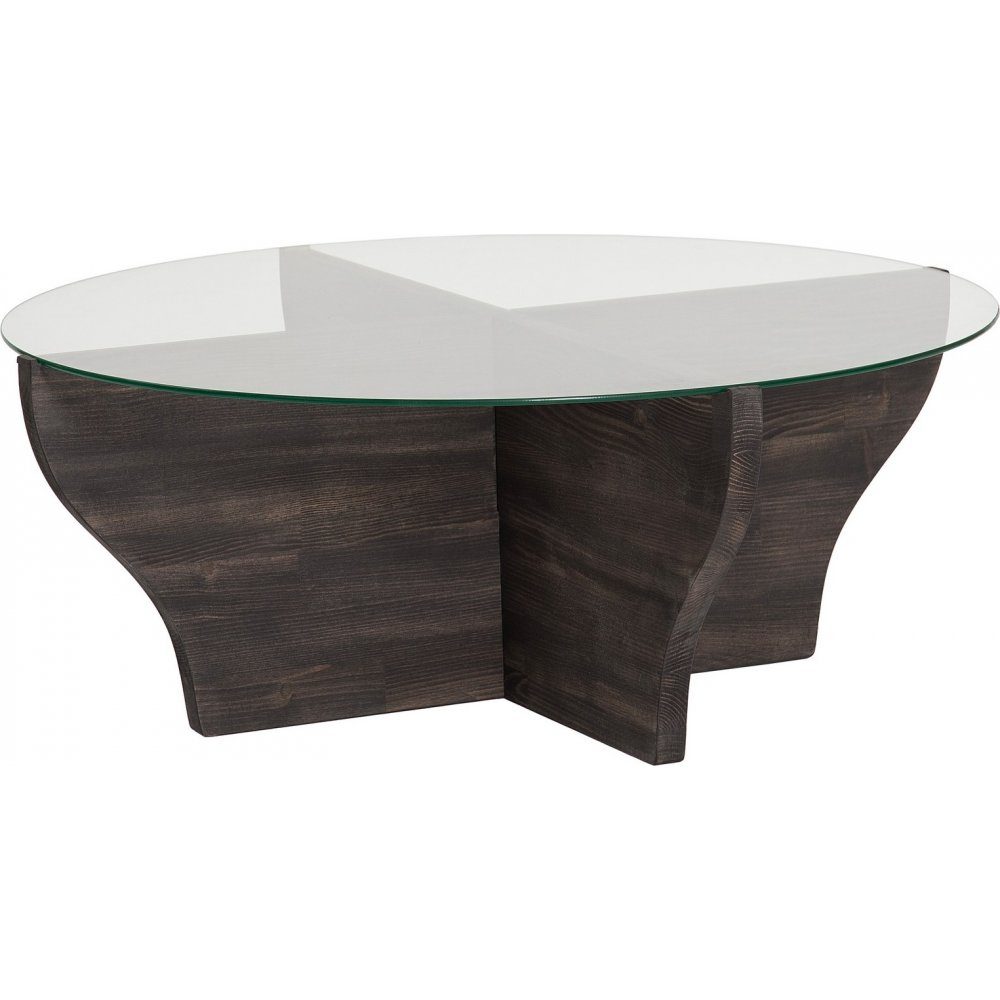 Soffbord av trä med bordsskiva av tempererat glas.