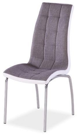 En härlig matstol med en modern design. Underredet är tillverkat av kromad metall och sitsen är klädd med en härlig blandning av tyg och konstläder för maximal komfort.
