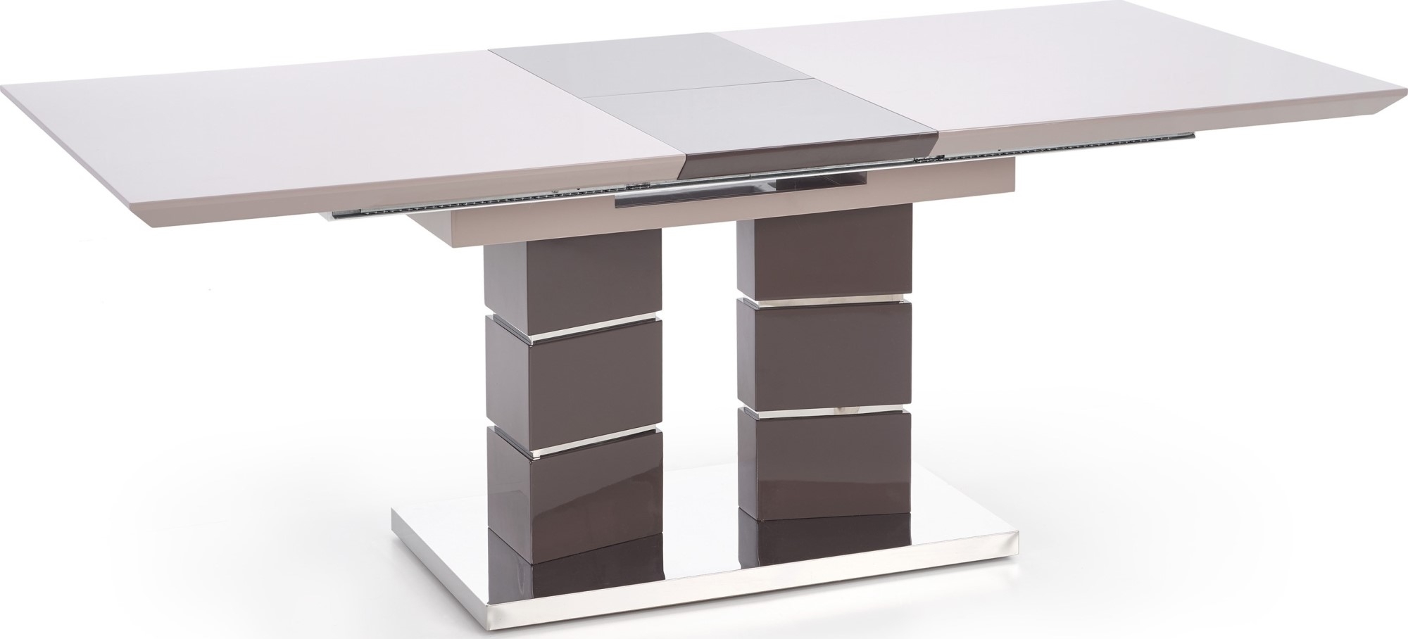 Ett elegant matbord med en modern design. Underredet är tillverkat i lackerad & kromad metall och bordsskivan i grå lackerad MFP (premium träskiva). Bordet kan lätt förlängas från 160 cm till 200 cm, perfekt när man har ett lite större sällskap.